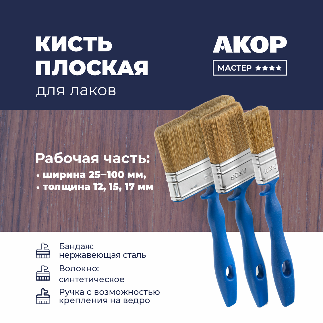 Рабочая часть кистей состоит из специально подобранного и подготовленного для лаков набора синтетических волокон.