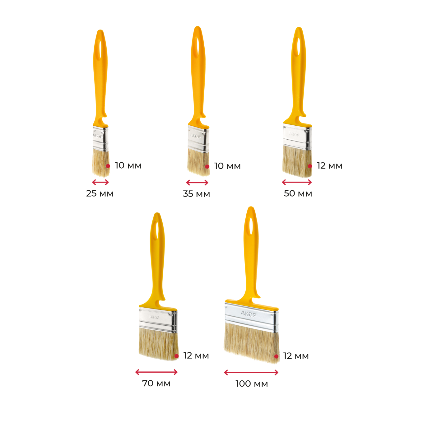 Кисти плоские для эмалей, ширина 25–100 мм, толщина 10–12 мм