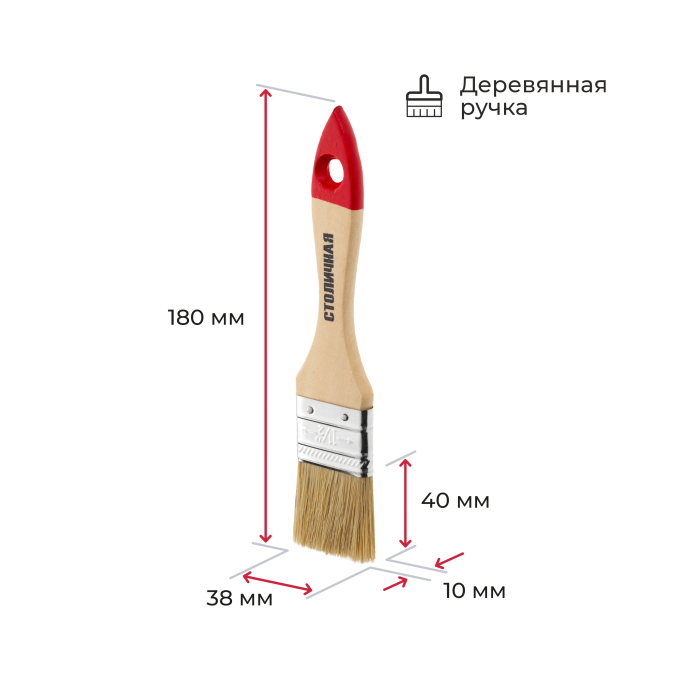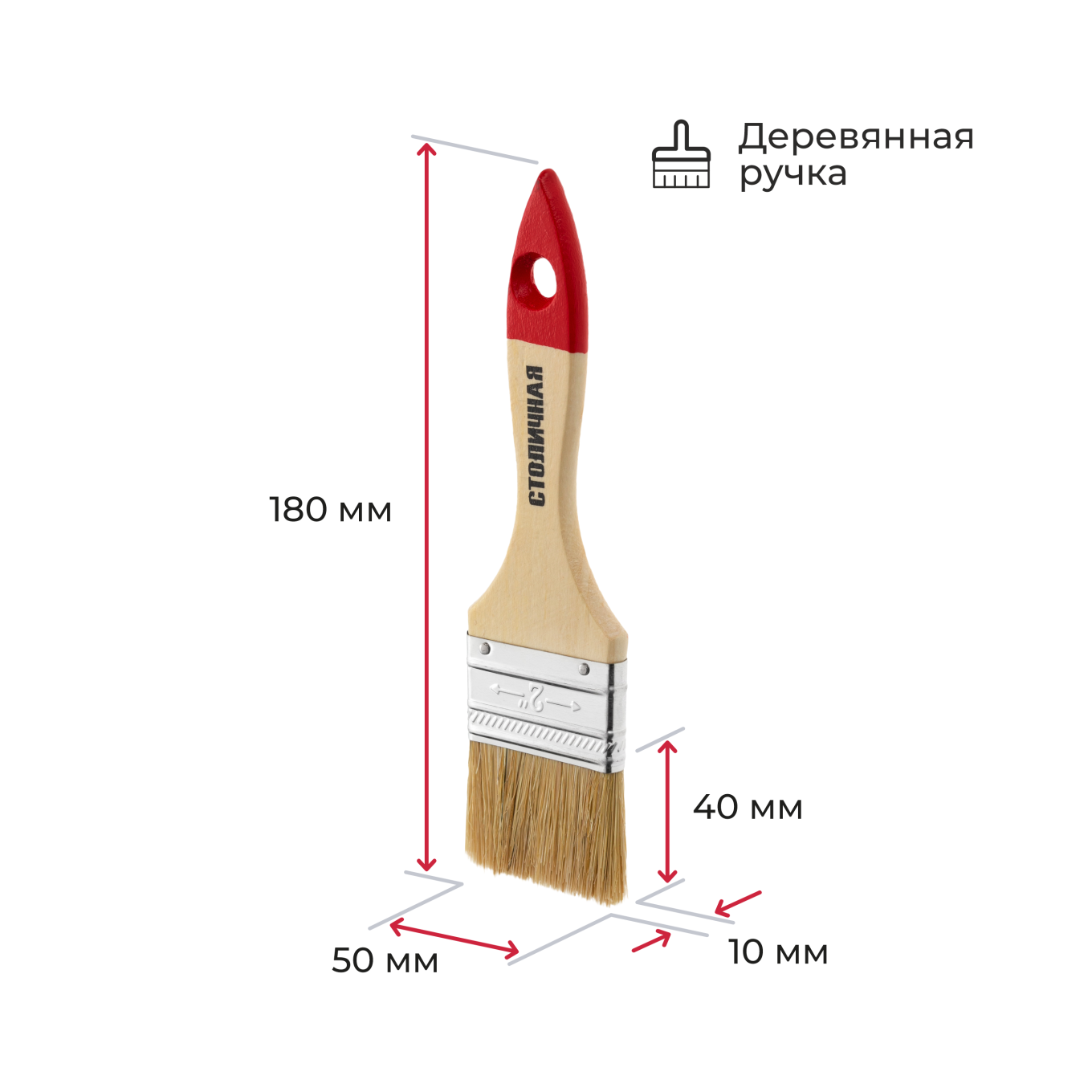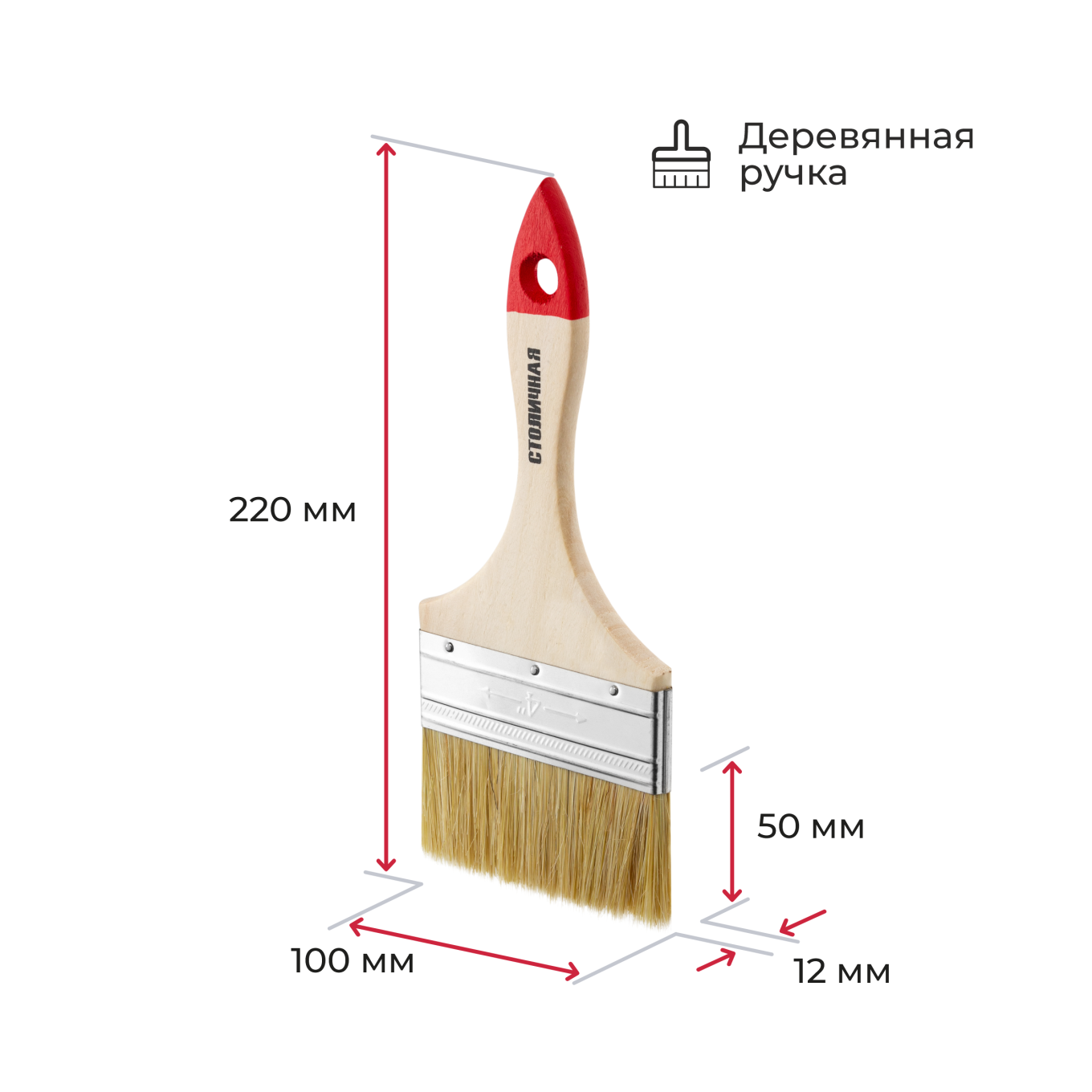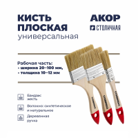 Кисти плоские универсальные, ширина щетины 20–100 мм, толщина 10–12 мм, деревянная ручка, Столичная