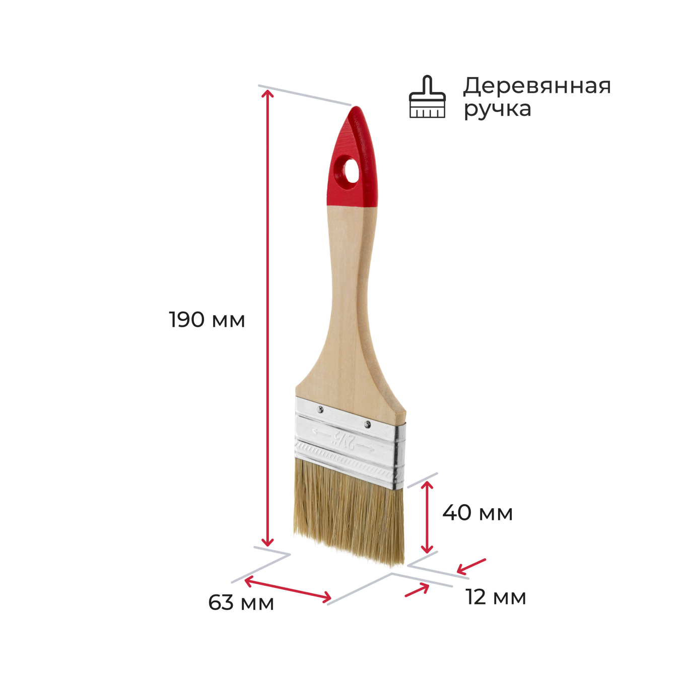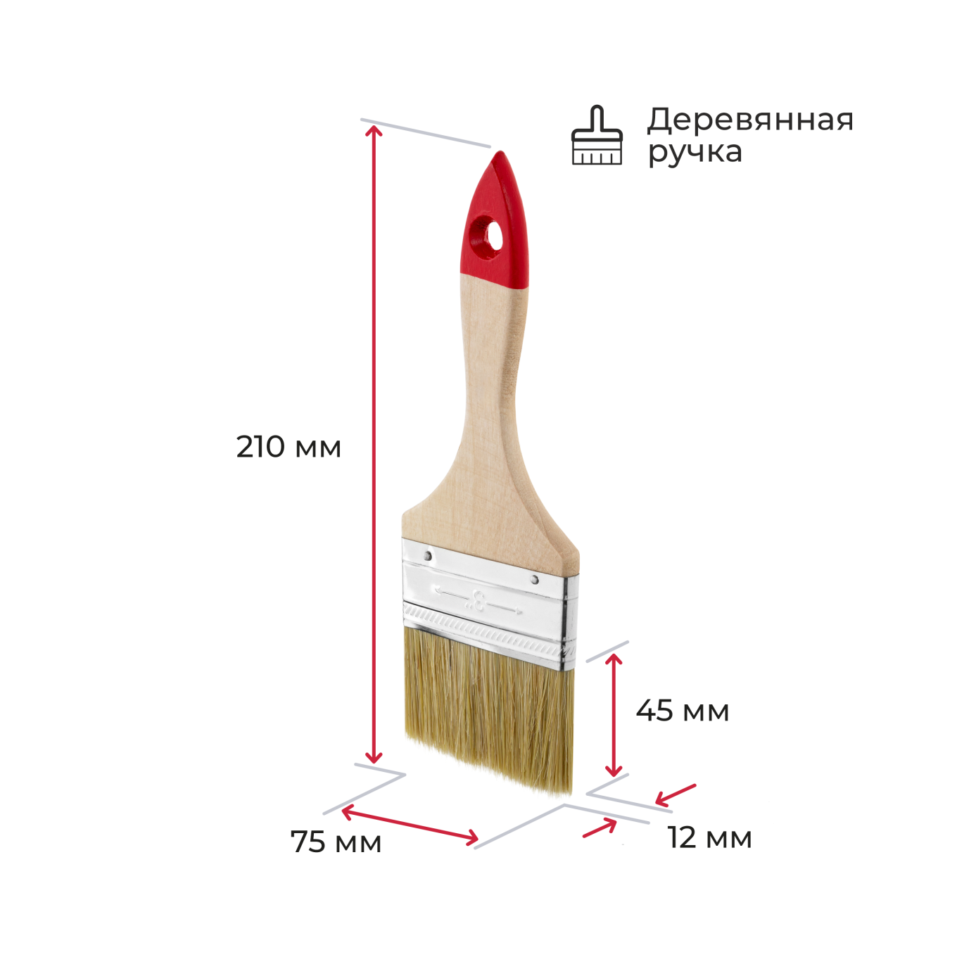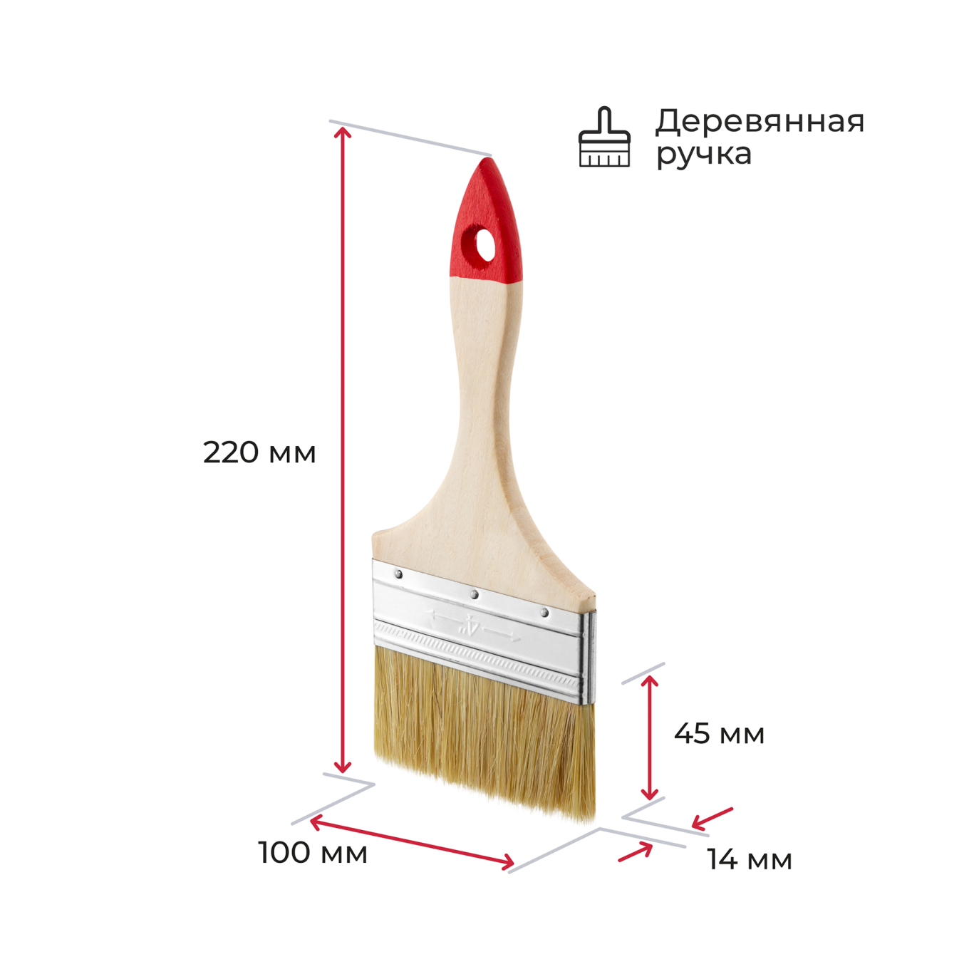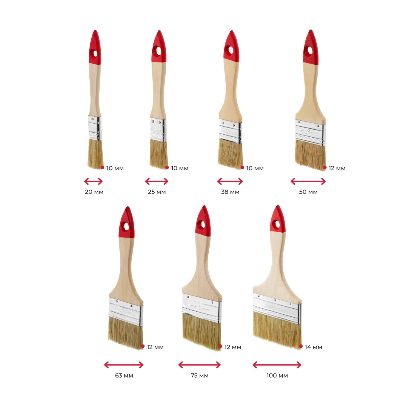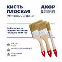 Кисти плоские универсальные, ширина 20–100 мм, толщина 10–14 мм, деревянная ручка, Столичная
