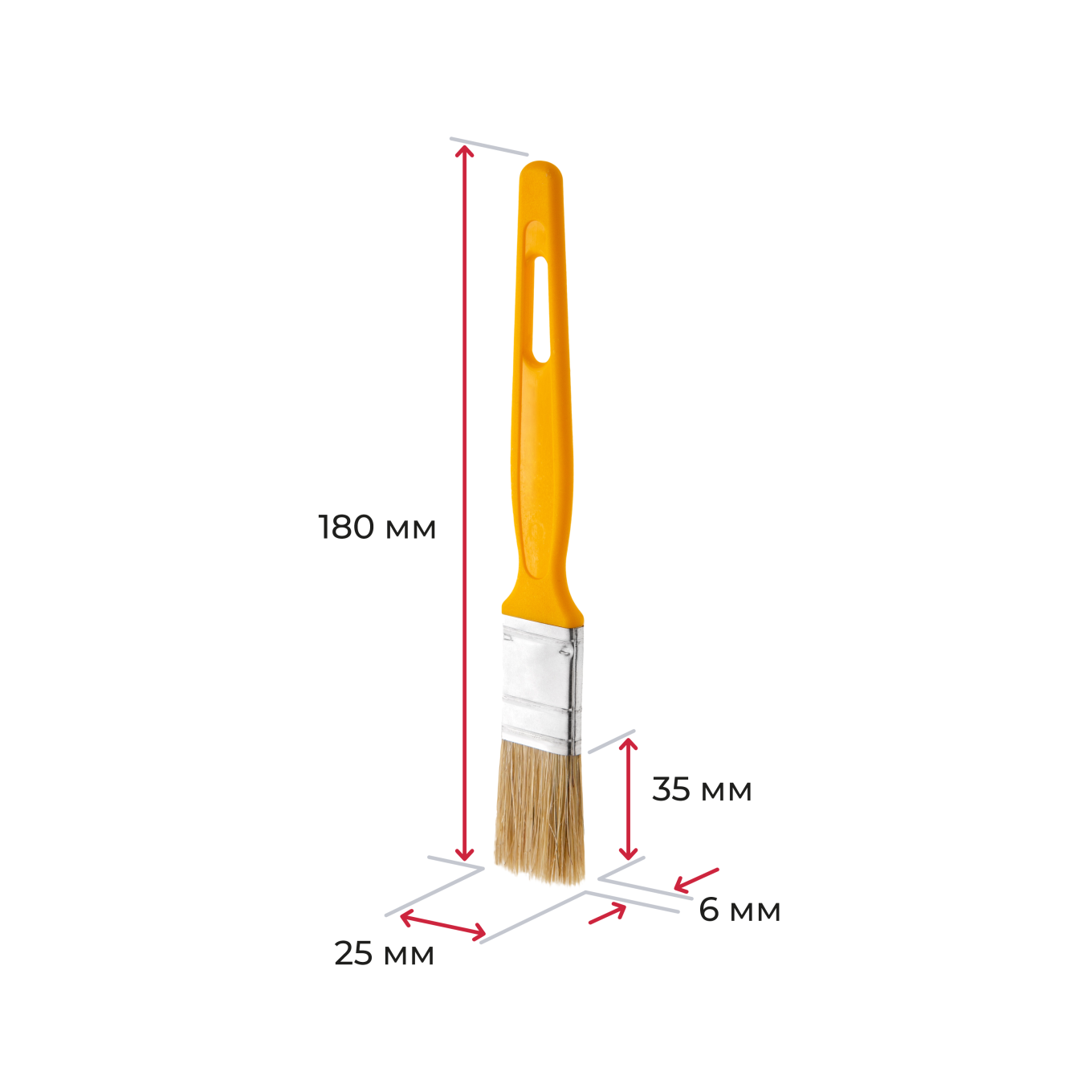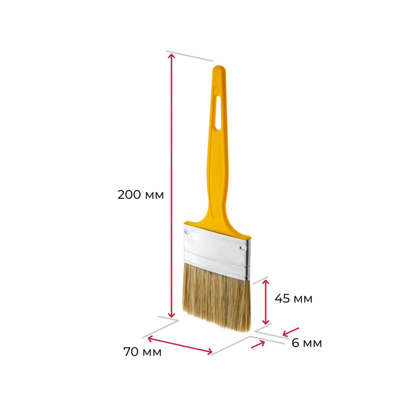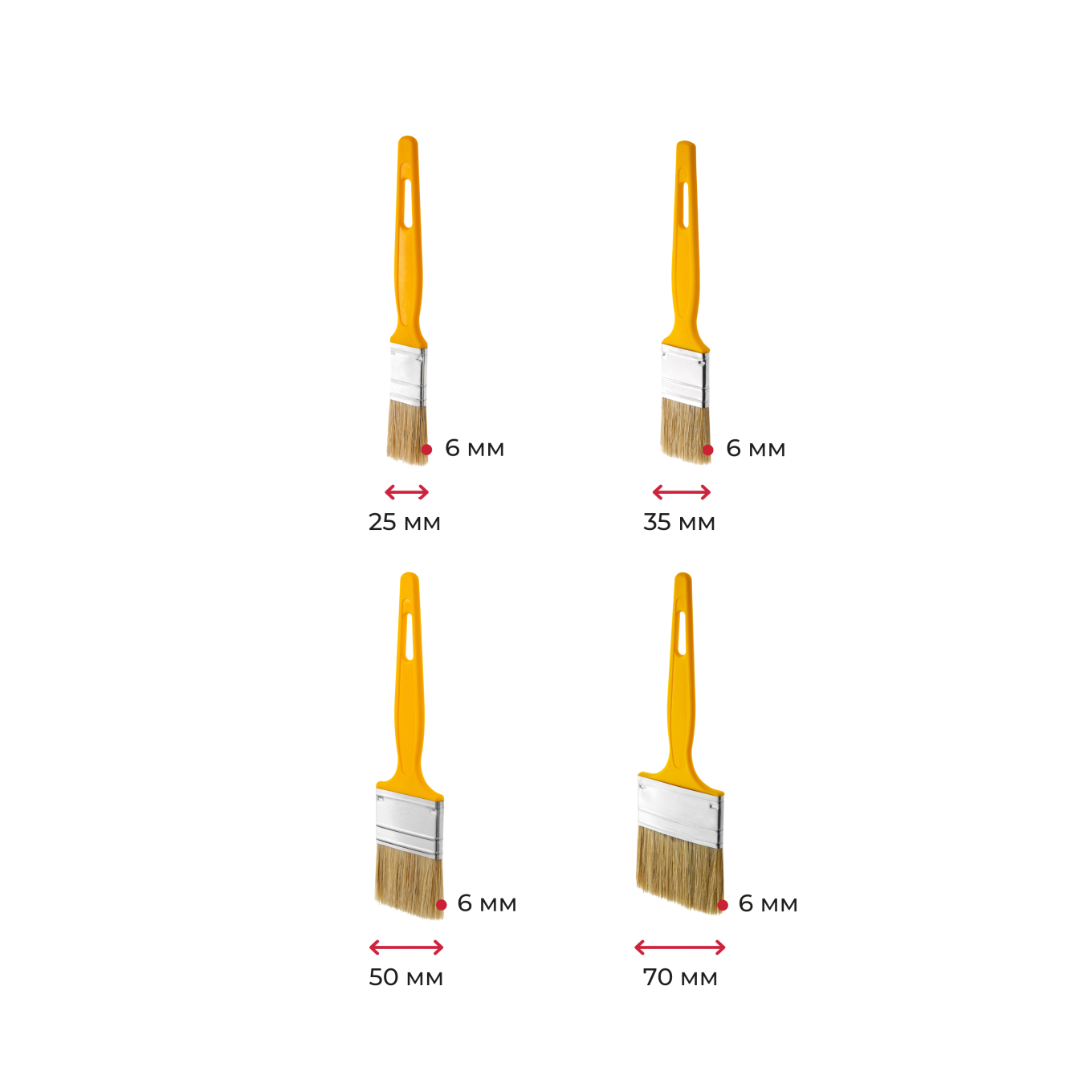 Кисти плоские универсальные, ширина щетины 25–70 мм, толщина 6 мм, желтая ручка