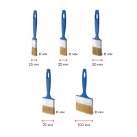 Кисти плоские универсальные, ширина 25–100 мм, толщина 8 мм, синяя ручка