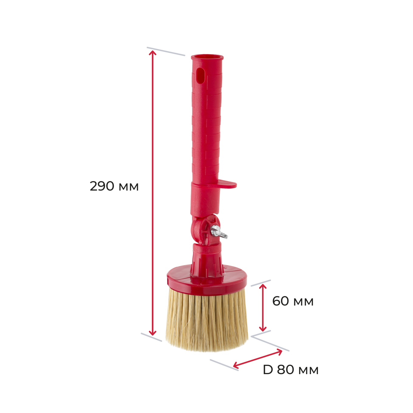 Съемная, противоскользящая ручка с возможностью крепления резьбового или конусного удлинителя, а также с возможностью крепления на ведро. Ручка изготовлена из пластика, имеет отверстие для подвеса.