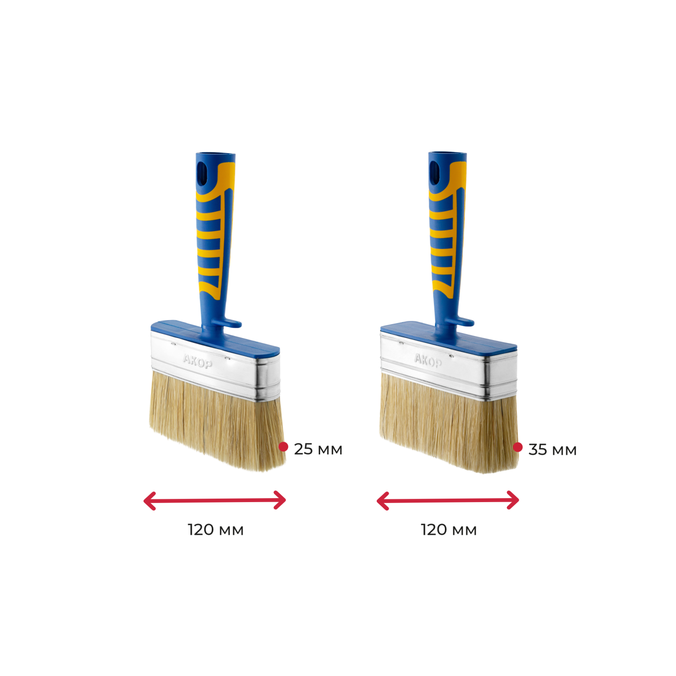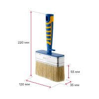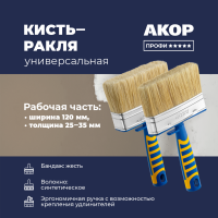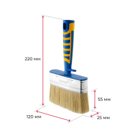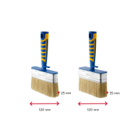 Ширина щетины 120 мм, толщина 25 и 35 мм, синтетическое волокно с кончиком в форме конуса. Щетина высшего качества идеально забирает и отдает краски любых типов.