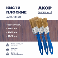 Кисти плоские для лаков, ширина 25, 35, 50 мм, толщина 10 и 12 мм, 3 шт.