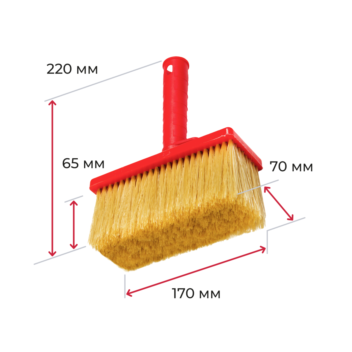 Съемная, противоскользящая ручка с возможностью крепления резьбового или конусного удлинителя, а также с возможностью крепления на ведро. Ручка изготовлена из пластика, имеет отверстие для подвеса.