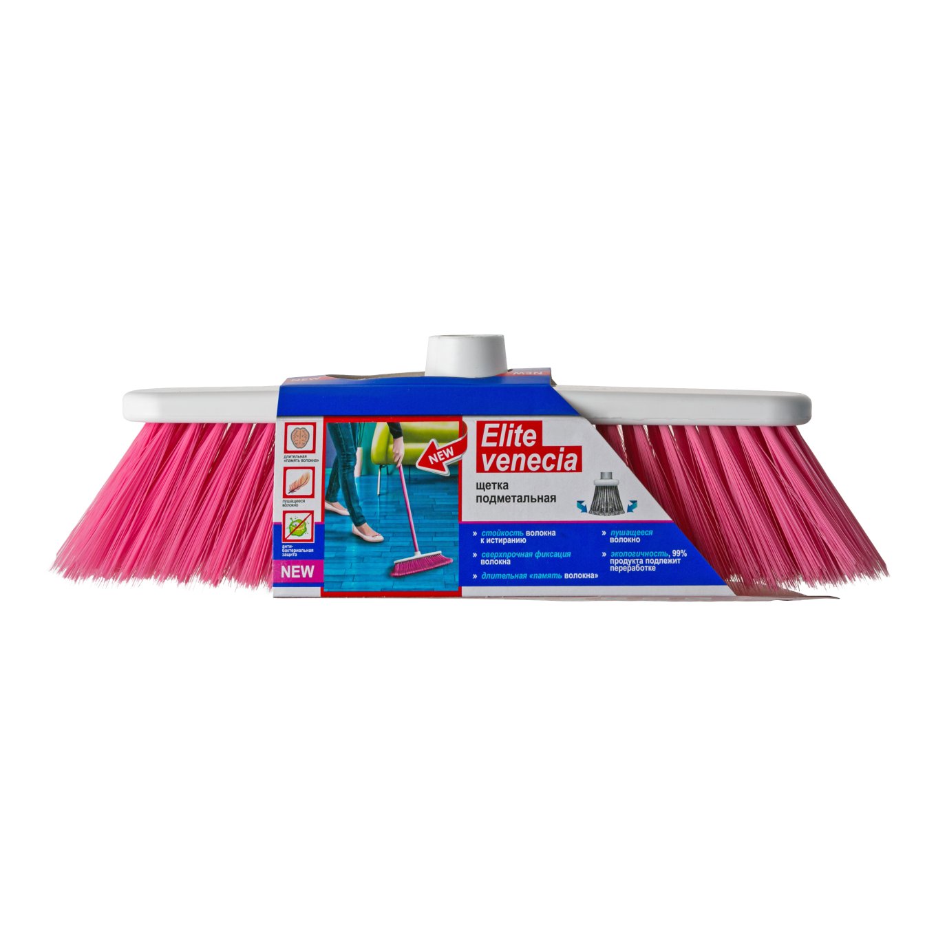 Щетки Venecia изготовлены из тонкого волокна с расщеплением на кончиках и позволяют сметать самые мелкие частицы мусора. Щетки деликатно очистят поверхность ламината и декоративной плитки.