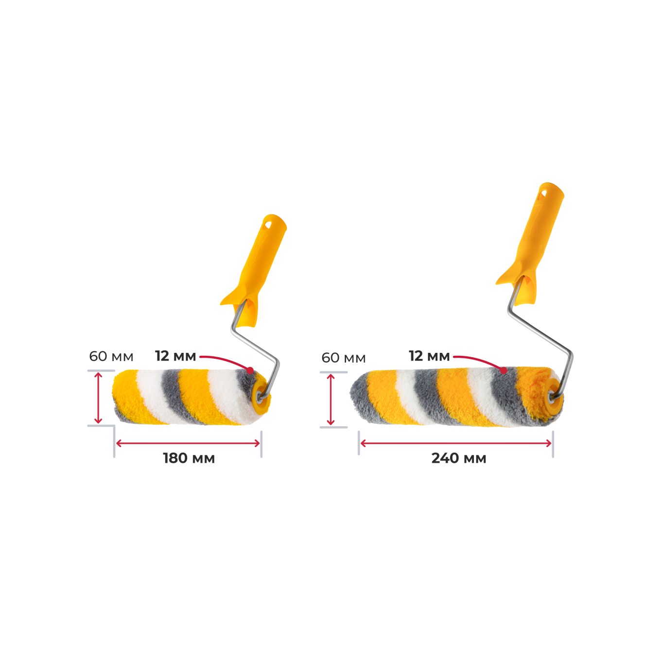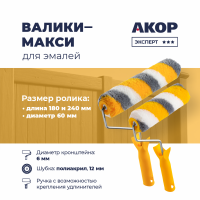 Валики для эмалей, ролики 180 и 240 мм, полиакрил 12 мм, кронштейн 6 мм